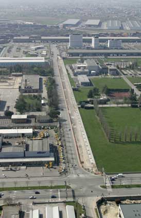 Vista aerea di via della Ricerca Scientifica durante i lavori per il suo allargamento. In primo piano l'innesto in Corso Stati Uniti . |