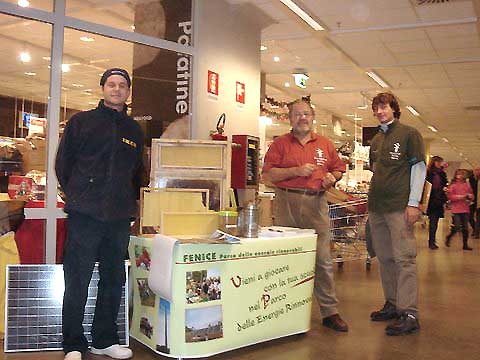 22.12.2007 Iniziativa promozionale della Fondazione Fenice onlus in occasione delle feste natalizie. Un gruppo di guide ecologiche del Parco delle energie rinnovabili hanno allestito uno stand all'interno del megastore Ikea di Padova Est allo scopo di far conoscere alla cittadinanza il nuovo impianto inaugurato lo scorso settembre [vedi news 29.09.07]. Il Parco Fenice si sviluppa nel cuore di un'area verde di oltre 500 mila mq sita tra la zona industriale e la città di Padova, in località Terranegra, prevedendo un percorso didattico interattivo di 1800 metri studiato per far conoscere a scuole, famiglie, associazioni e imprenditori le diverse potenzialità energetiche offerte dai pannelli fotovoltaici, dai ventilatori eolici, dalle coltivazioni bioenergetiche, ecc. Parte integrante del Parco sono un sistema di recupero delle acque meteoriche e un’aula didattica. Prevista anche una Energy House, tuttora in fase di realizzazione, costituita da due edifici - un ostello e un centro di formazione - dotati dei più innovativi sistemi per la produzione di energia da fonti rinnovabili. [>>> click sulle foto per ingrandirle]